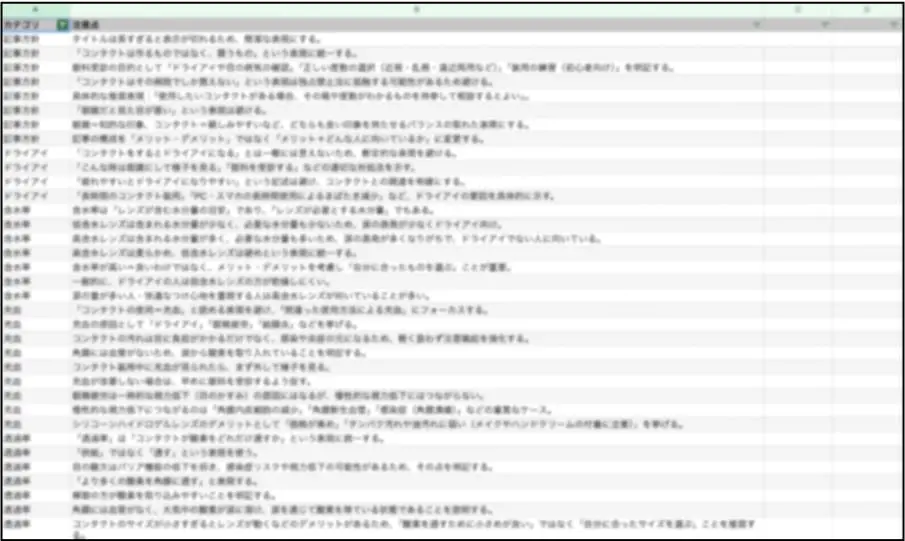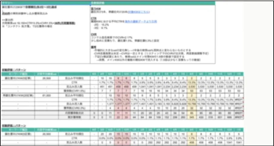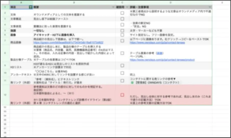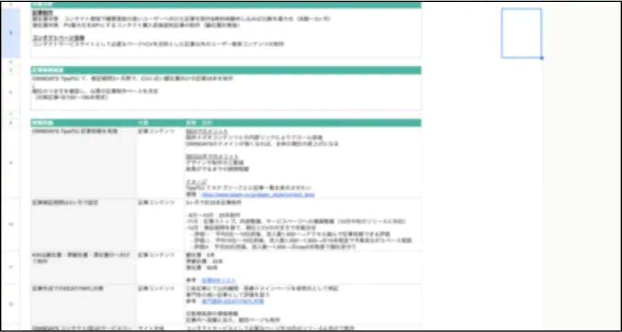 続いて、対策キーワードに対しての記事の設計書(記事構成)を作成します。単なる関連・サジェストキーワードを入れ込むだけではなく、キーワードジャーニーをもとにどのようなトンマナ(記事の体裁)で入稿するかまでこの段階で決定します。