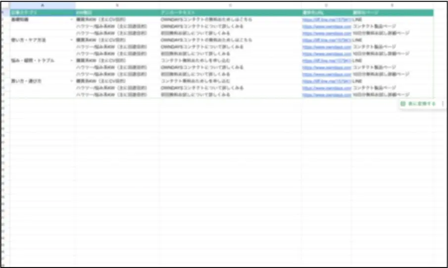 ヒアリング内容をもとに、下記3つの戦略シートを作成します。